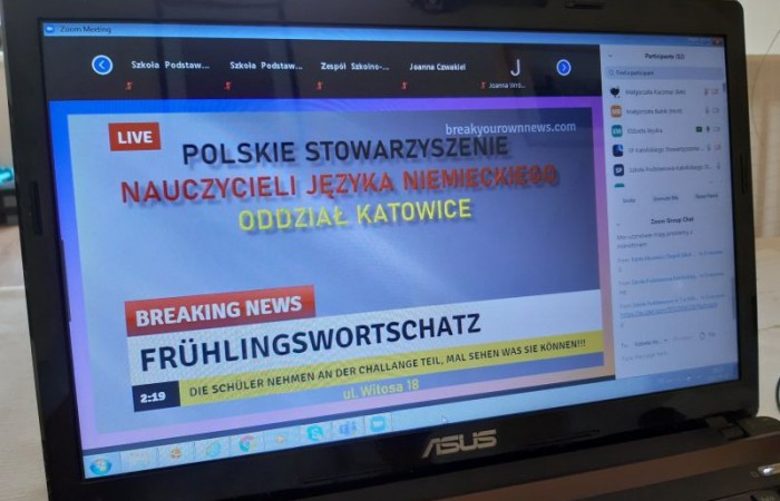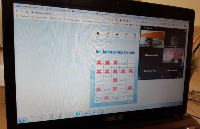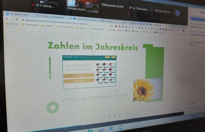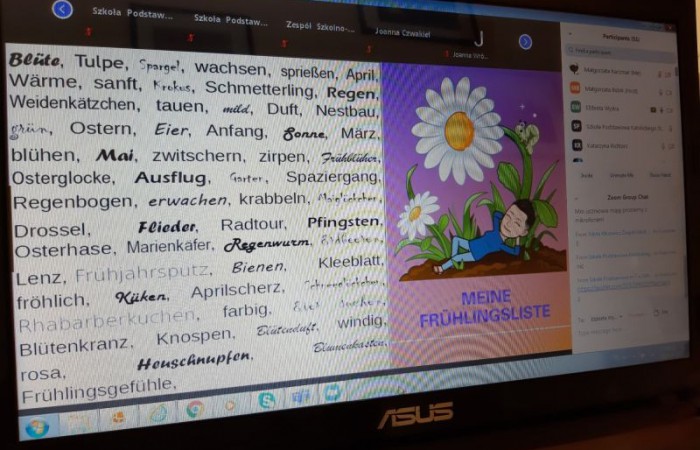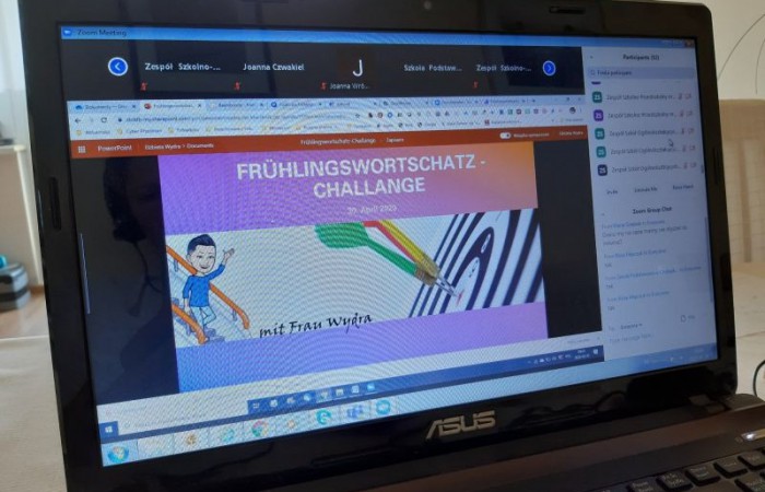 Szkoła online nie musi być nuda. Uczennice klasy 8 DSD – Julka, Patrycja i Ada, wraz z nauczycielką języka niemieckiego panią Małgorzatą Kaczmar, uczestniczyły w innowacyjnym projekcie edukacyjnym z języka niemieckiego „Frühlingswortschatz-Challange” zorganizowanym przez Niemieckie Towarzystwo Oświatowe z Opola i Polskie Stowarzyszenie Nauczycieli Języka Niemieckiego z Katowic.