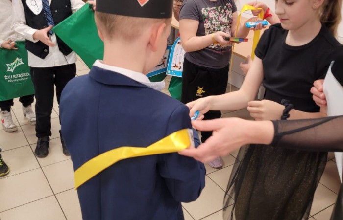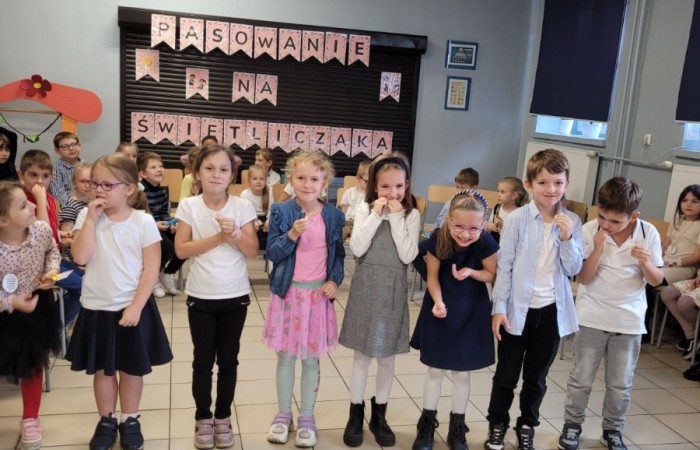 W dniu 25 października w świetlicy odbyła się uroczystość: Pasowanie na Świetliczaka. Jest to cykliczna impreza przeznaczona dla uczniów klas pierwszych, którzy korzystają z opieki świetlicowej.Wychowankowie świetlicy, aby zostać przyjętym do grona świetliczaków musieli wykonać różne zadania,odpowiedzieć na trudne pytania oraz zjeść kawałek cytryny z uśmiechem na ustach 🙂. Następnie pierwszaki zlożyły ślubowanie świetliczaka, w którym zobowiązali się do: przestrzegania ustalonych zasad, kulturalnego zachowania oraz wspólnej i zgodnej zabawy.Na zakończenie uroczystości zostały wręczone odznaki świetliczaka, słodkości oraz upominki przygotowane przez uczniów z klas trzecich. To był wspaniały dzień.