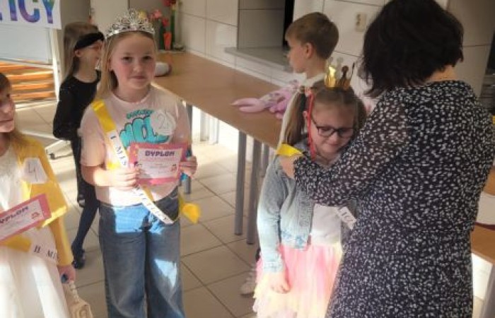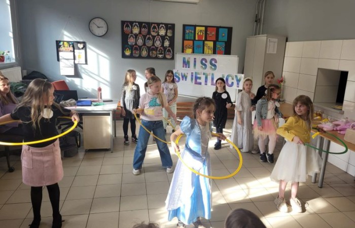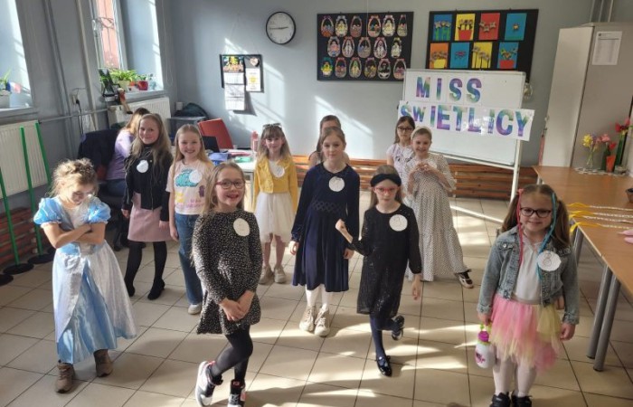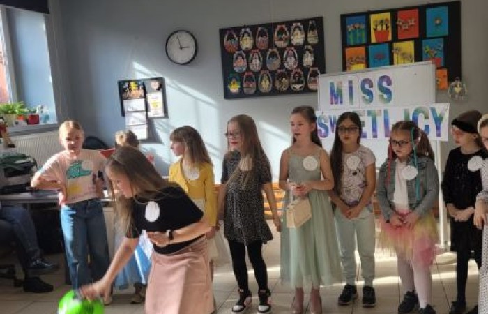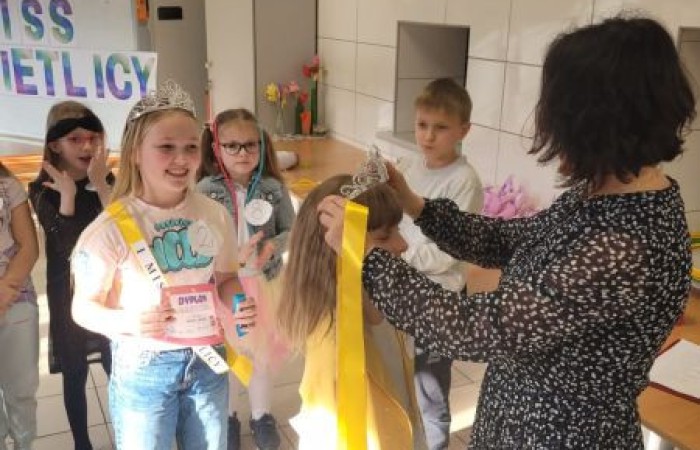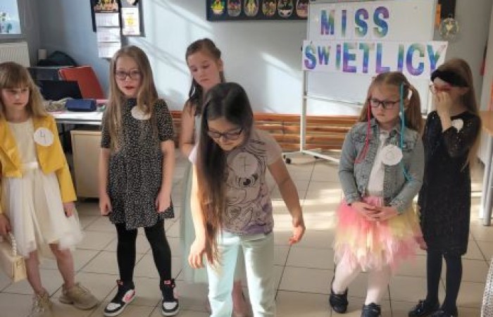Za nami już kolejna edycja konkursu Miss Świetlicy 2024 r. W tym roku szkolnym tytuł i korona trafiła do Laury G. z klasy 3a. Pozostałe tytuły zdobyly: Magda T. , kl.3a - II Miss Świetlicy. Hanna P. , kl. 2a - III Miss Świetlicy. Aleksandra P. , kl. 1a - Miss Publiczności. Kandydatki musiały zaprezentować swój urok osobisty, wykazać się wiedzą ogólną, talentem tanecznym oraz umiejętnościami sportowymi