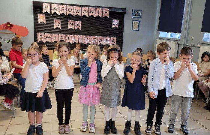 W dniu 25 października w świetlicy  odbyła się  uroczystość: Pasowanie na Świetliczaka. Jest to cykliczna impreza przeznaczona dla uczniów klas pierwszych, którzy korzystają z opieki świetlicowej.Wychowankowie świetlicy, aby zostać przyjętym do grona świetliczaków musieli wykonać różne zadania,odpowiedzieć na trudne pytania oraz zjeść kawałek cytryny z uśmiechem na ustach 🙂. Następnie pierwszaki zlożyły ślubowanie świetliczaka, w którym zobowiązali się do:  przestrzegania ustalonych zasad, kulturalnego zachowania oraz wspólnej i zgodnej zabawy.Na zakończenie uroczystości zostały wręczone odznaki świetliczaka, słodkości oraz upominki przygotowane przez uczniów z klas trzecich. To był wspaniały dzień.