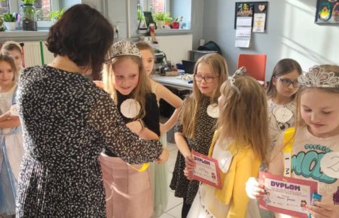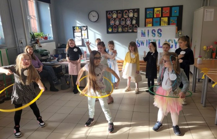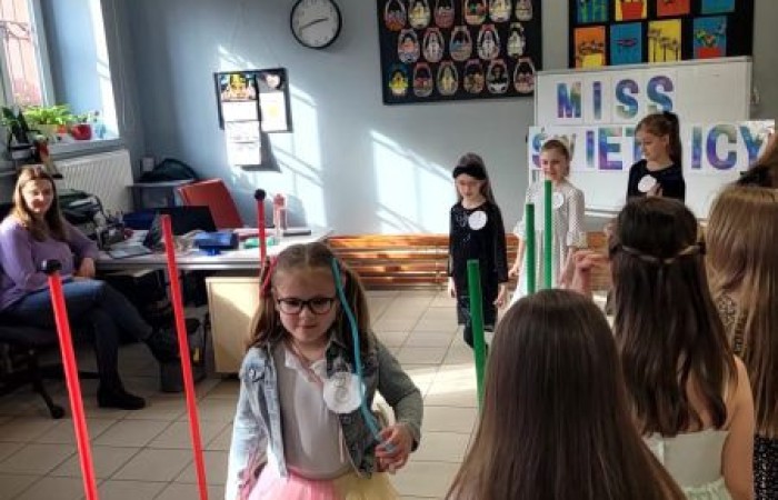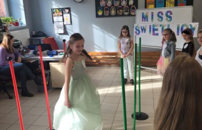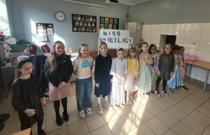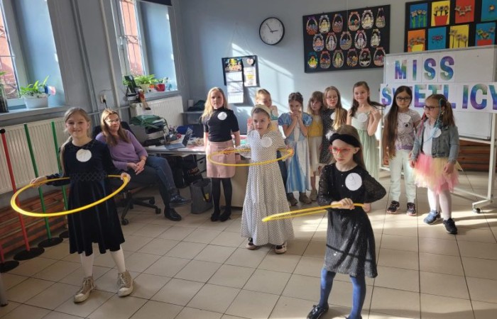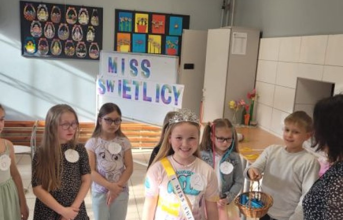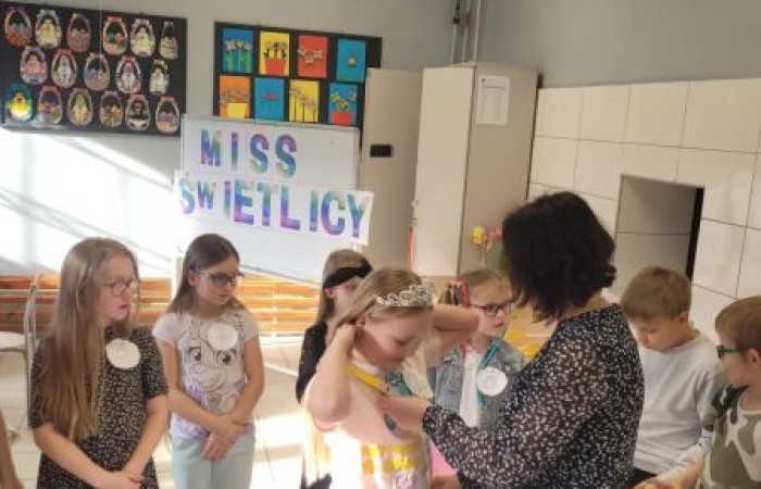 Za nami już kolejna edycja konkursu  Miss Świetlicy 2024 r. W tym roku szkolnym tytuł i korona trafiła do Laury G. z klasy 3a. Pozostałe tytuły zdobyly: Magda T. , kl.3a  - II  Miss Świetlicy. Hanna P.  , kl. 2a - III Miss Świetlicy. Aleksandra P. , kl. 1a  - Miss Publiczności. Kandydatki musiały zaprezentować swój urok osobisty, wykazać się wiedzą ogólną, talentem tanecznym oraz umiejętnościami sportowymi