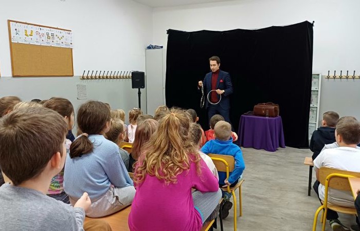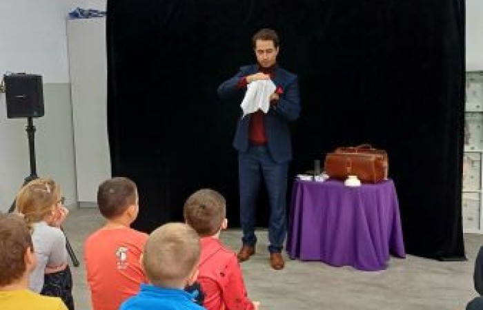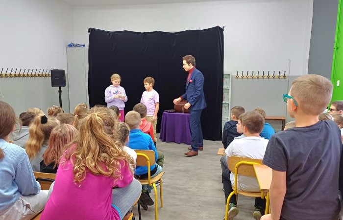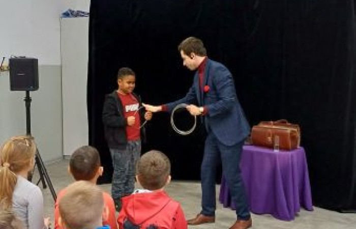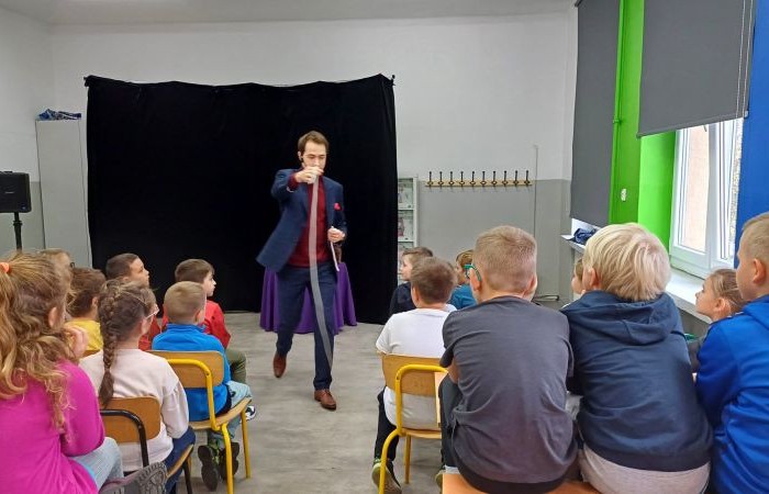 W  piątek, 15 listopada w naszej świetlicy było pełno  wrażeń, emocji i zaskoczenia. Gościliśmy iluzjonistę Pana Błażeja Stachurę.Na pokazie mogliśmy zobaczyć niesamowite sztuczki magiczne: czary z kartami,  węzłem na linie, piłeczką bilardową wyskakującą z kubeczka, magicznymi obręczami oraz cudownym rozmnożeniem wody.Na pokazie często słyszeliśmy: To niemożliwe!, Ale jak?, What?,Co? Widok zaskoczenia  na twarzach dzieciaków......bezcenny.