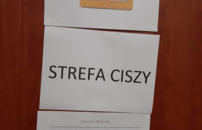 Jeśli chcesz spędzić w ciszy długą przerwę 10.30-10.45, przyjdź do jednej z sal 3, 12 lub 23. W strefie ciszy można porysować, poczytać, pograć w grę lub po prostu odpocząć.