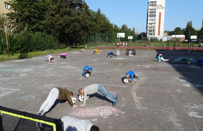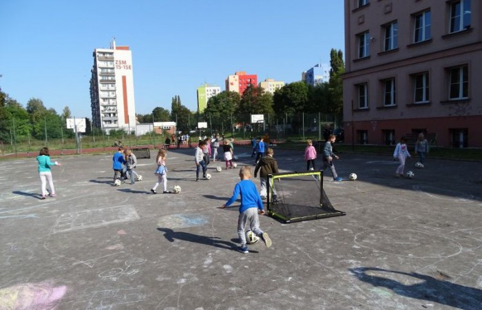 We wrześniu w naszej szkole odbyły się zajęcia sportowe w ramach lekcji wychowania fizycznego dla klas 1-3 prowadzone przez Akademię Piłkarską BUMERANG. Dziewczynki i chłopcy w pełnym skupieniu i z zaangażowaniem wykonywali polecenia trenera.